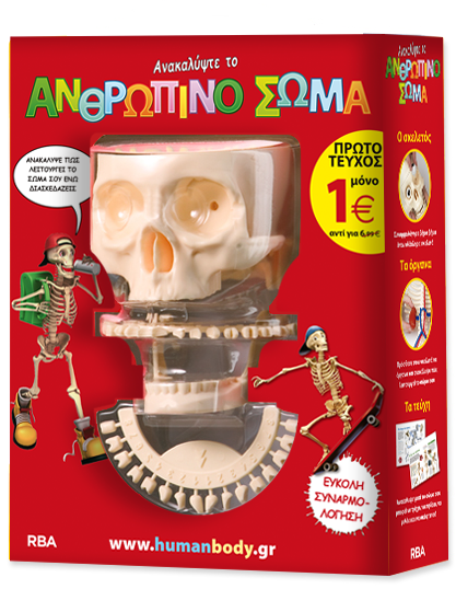 Συμπληρώνοντας τη συλλογή, το παιδί θα φτιάξει ένα ολοκληρωμένο Ανθρώπινο Σώμα που θα του δώσει την ευκαιρία να ανακαλύψει όλα τα μυστικά του σκελετού μας.